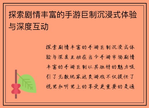 公司旗下的代表作《极限征程》系列,凭借其深厚的剧情构建和复杂的世界设定,迅速吸引了大批玩家,并成功推出多个续集,成为全球知名的游戏品牌之一。此外,《光影狂潮》和《未来之战》等作品也取得了市场的巨大成功,赢得了多个游戏奖项,并被多家专业游戏媒体评为年度最佳游戏。